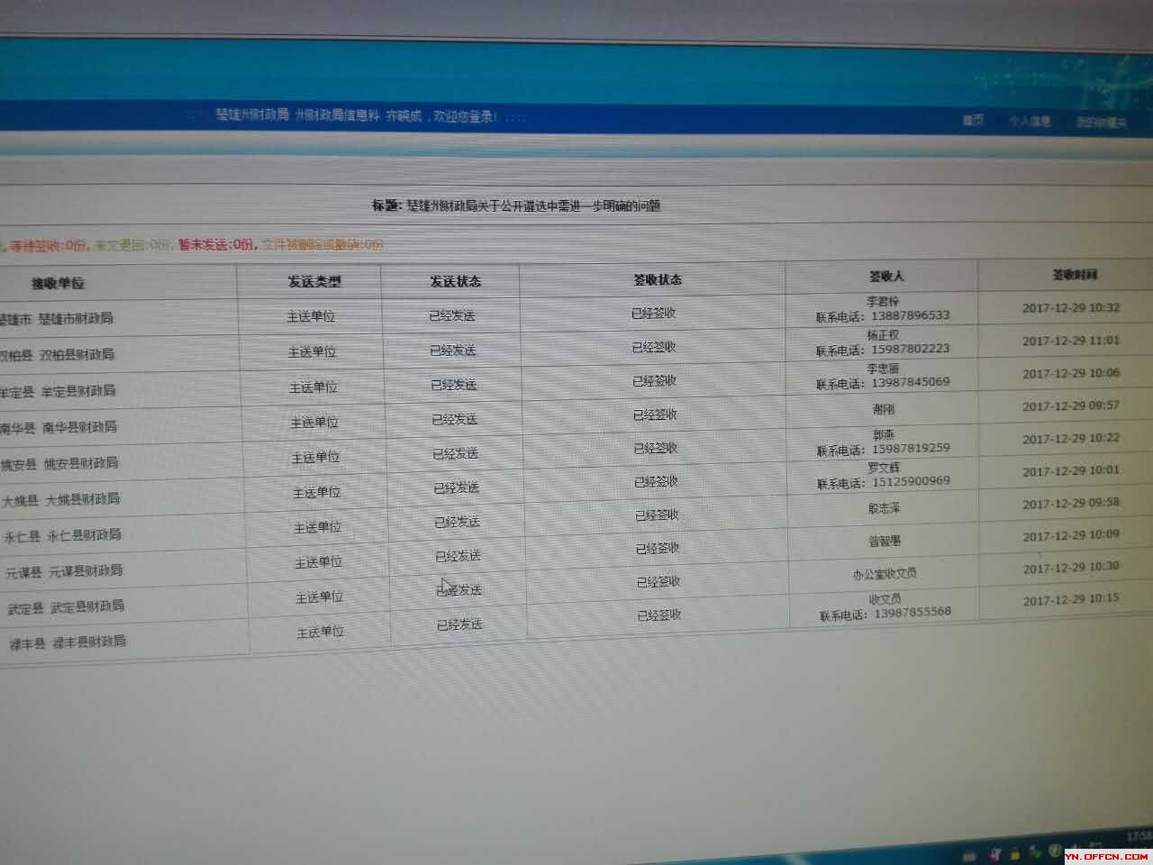 《楚雄州財政局關于公開遴選中需進一步明確的問題》協同辦公發文各縣財政局簽收情況.jpg