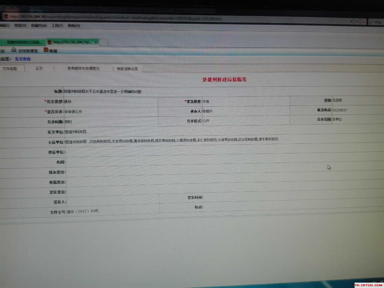 《楚雄州財政局關于公開遴選中需進一步明確的問題》協同辦公發文圖片.jpg