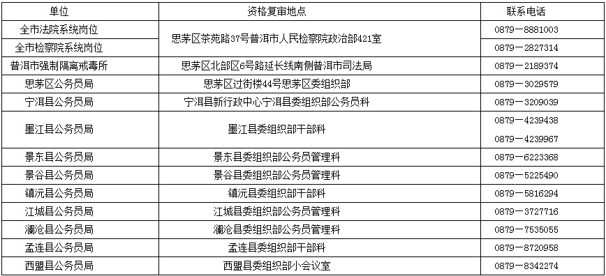 4.資格復審期間,請各位考生合理安排出行時間并注意安全,如遇情況及時與中共普洱市委組織部公務員一科聯系(聯系電話:0879—2141632)