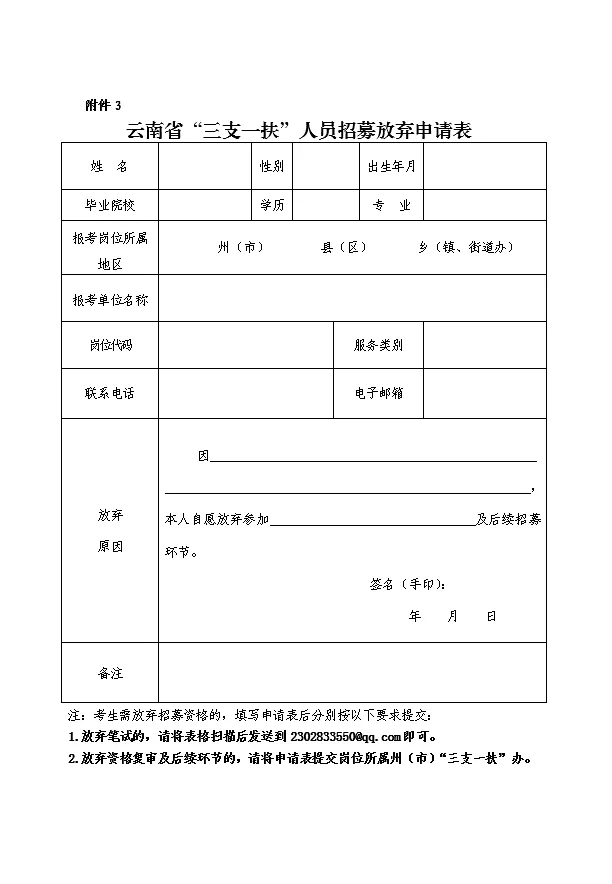 2.云南省“三支一扶”人員招募審批表