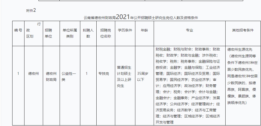 2.云南省德宏州財政局預算評審中心招聘碩士及以上研究生崗位及資格條件